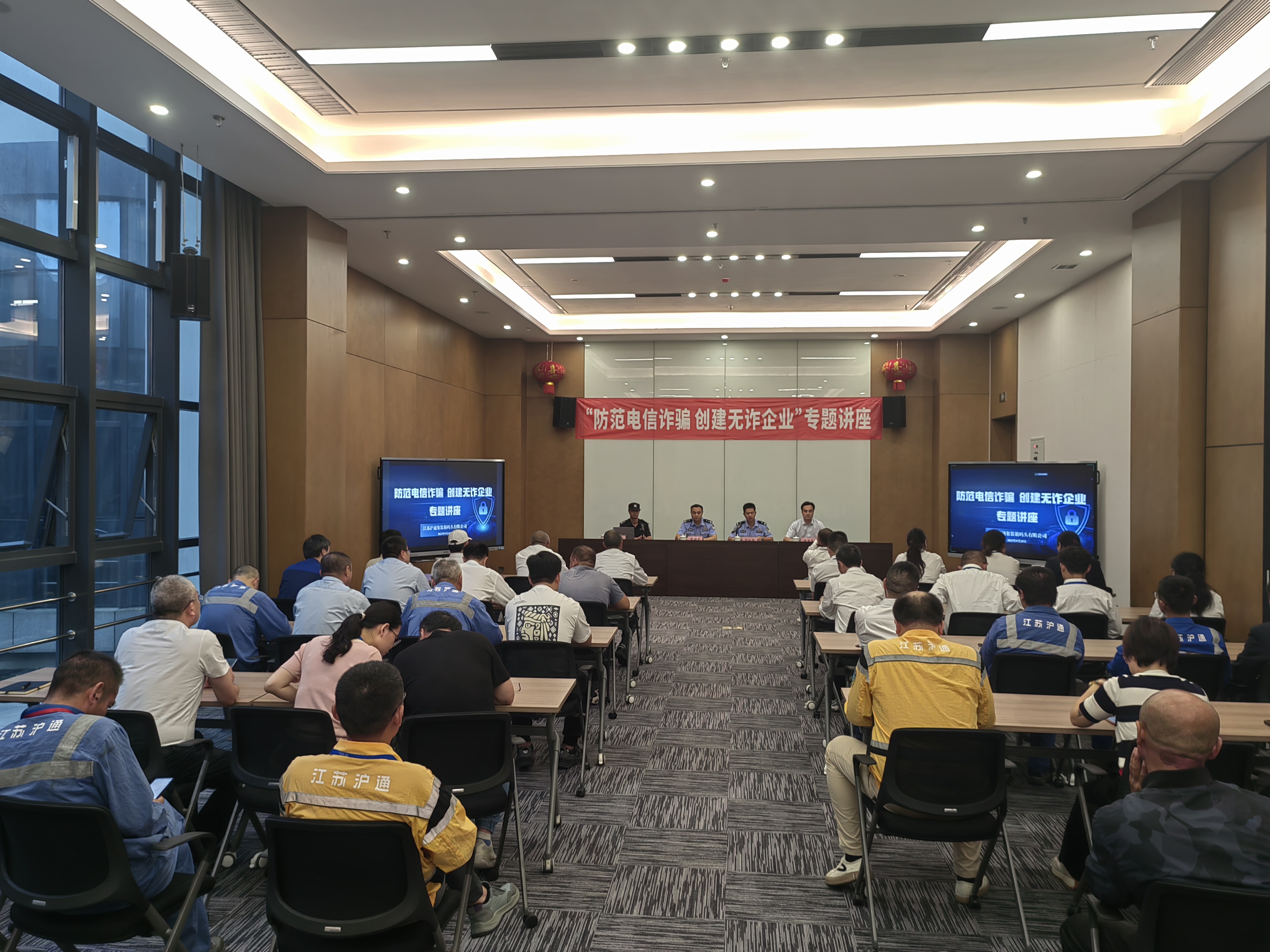9月15日下午,滬通公司組織開展“防范電信詐騙 創(chuàng)建無詐企業(yè)”專題講座。活動特邀呂四港海防所教導員戢朝華、副所長彭從祥和反詐講師徐文俊出席,公司50名職工參加活動。