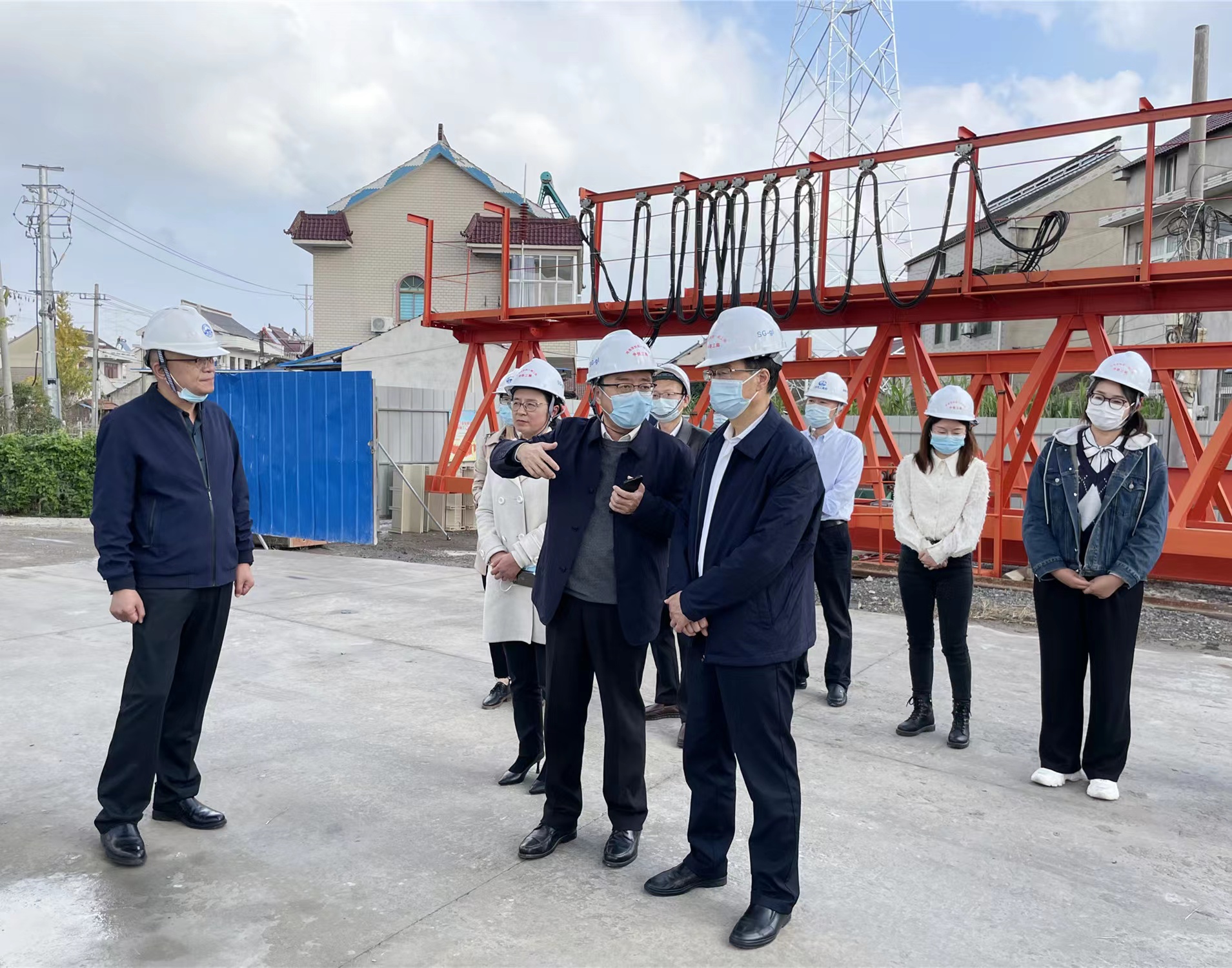 陳俊等一行實地察看了跨寧啟鐵路特大橋128米連續(xù)梁施工現(xiàn)場。南通港集團通海鐵路建設(shè)有限公司總經(jīng)理鎮(zhèn)杰向調(diào)研組匯報了項目建設(shè)概況、區(qū)位優(yōu)勢、發(fā)展定位、建設(shè)進展及下階段重點推進計劃等情況。