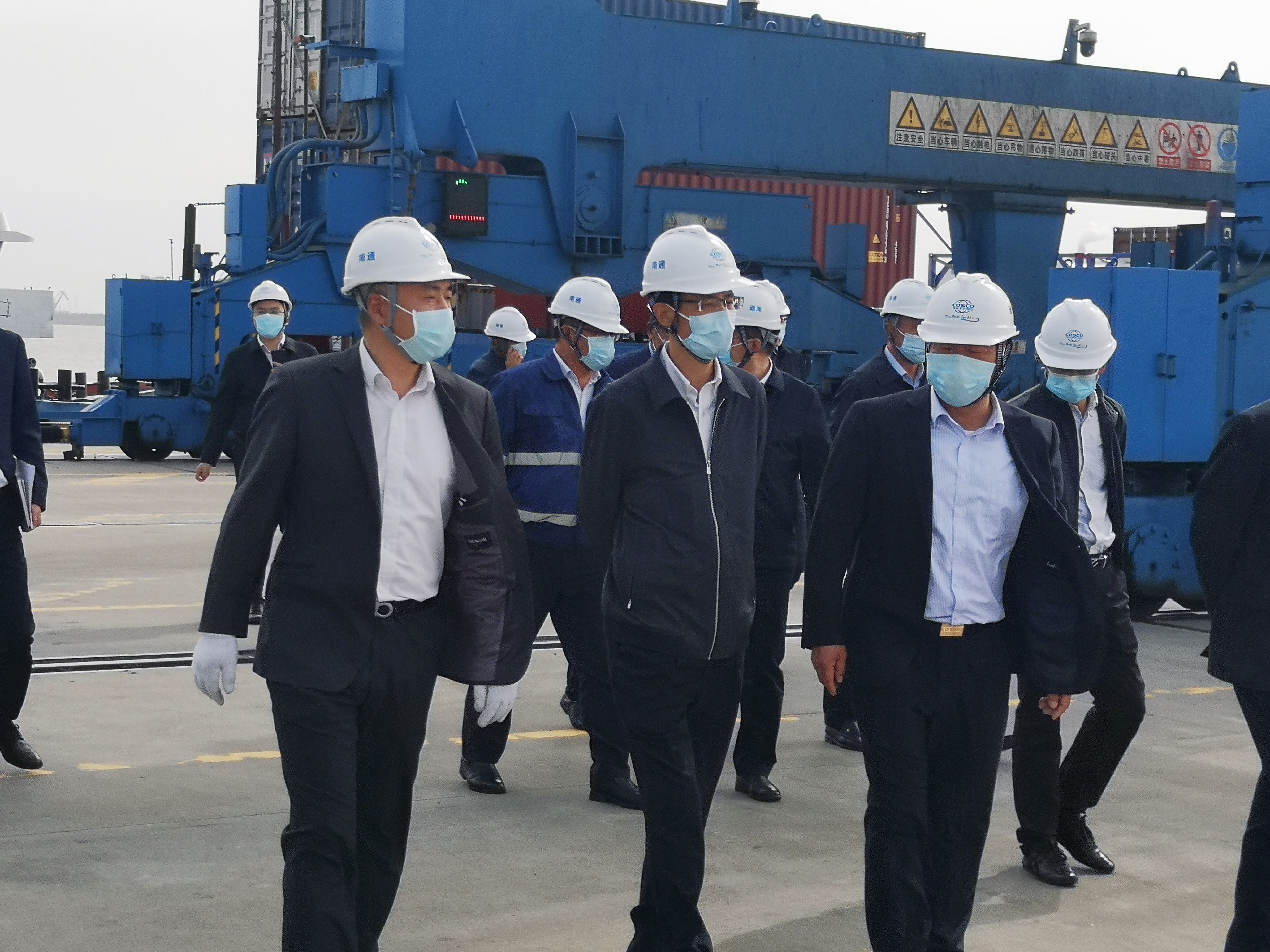 童劍一行在港區現場聽取了南通通海港口有限公司黨委書記、董事長許穩林關于公司疫情防控、保通保暢與復工復產的情況介紹,并實地察看了碼頭一線安全生產措施落實和外貿船舶作業專班閉環管理情況。