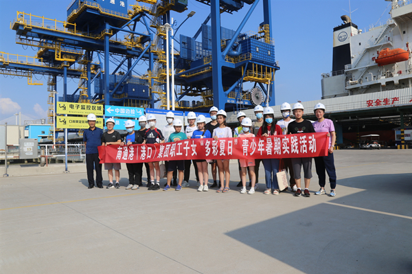 在橫港沙基地碼頭前沿現(xiàn)場,孩子們第一次與萬噸巨輪零距離接觸、看到嶄新的現(xiàn)代化港機設(shè)備時,一個個興奮不已。