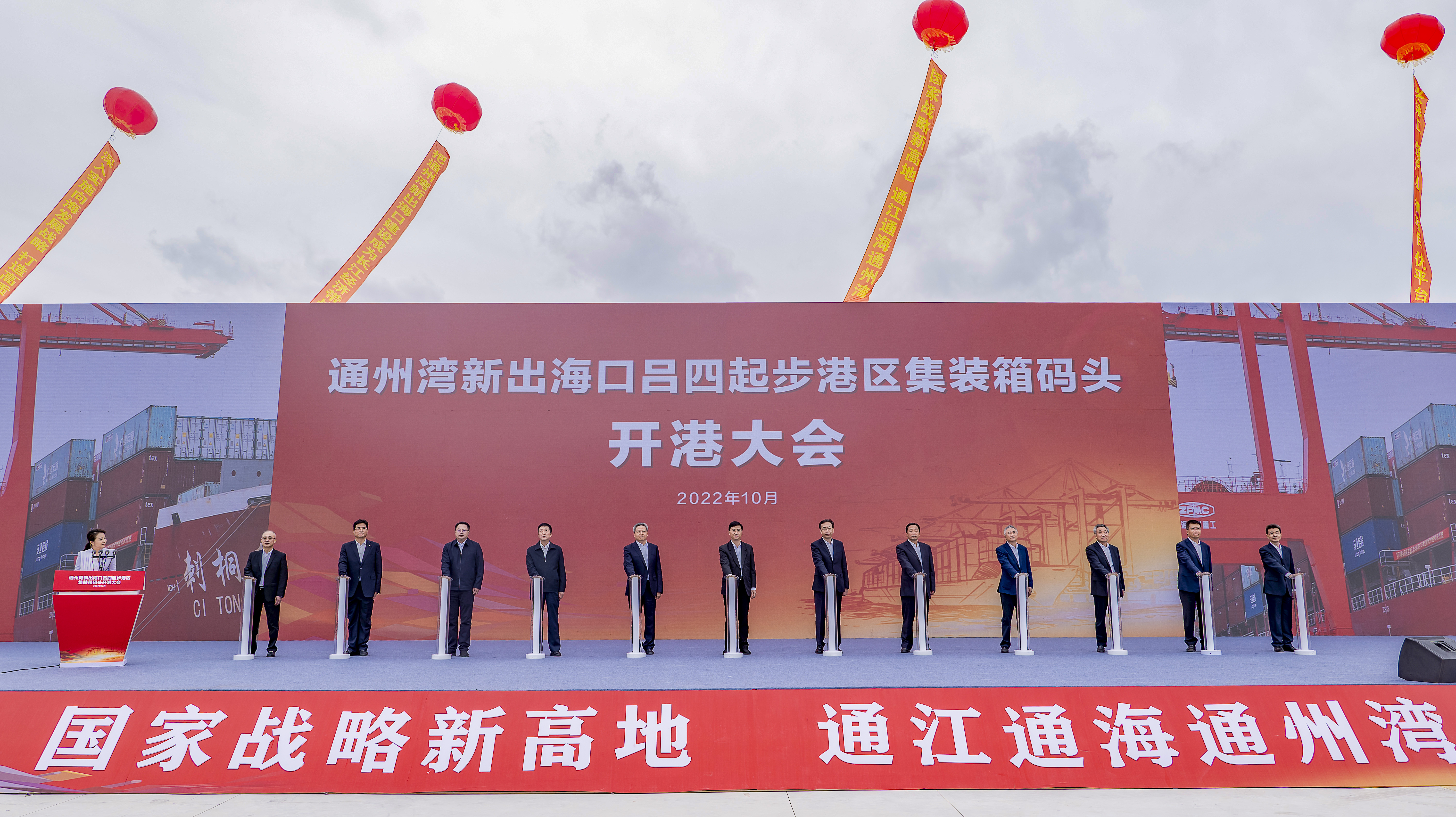 省政府副秘書(shū)長(zhǎng)劉世虎,省交通運(yùn)輸廳一級(jí)巡視員丁軍華,江蘇海事局局長(zhǎng)朱汝明,上港集團(tuán)董事長(zhǎng)顧金山、總裁嚴(yán)俊,江蘇省港口集團(tuán)董事長(zhǎng)陳明、總經(jīng)理關(guān)永健,上海市交通委港務(wù)監(jiān)管處處長(zhǎng)李立民和南通市委書(shū)記、市人大常委會(huì)主任王暉,市委副書(shū)記、市長(zhǎng)吳新明,市政協(xié)主席黃巍東,市人大常委會(huì)常務(wù)副主任、黨組副書(shū)記莊中秋等出席開(kāi)港大會(huì)并共同啟動(dòng)按鈕、見(jiàn)證開(kāi)港。市委副書(shū)記、市長(zhǎng)吳新明主持開(kāi)港大會(huì)。