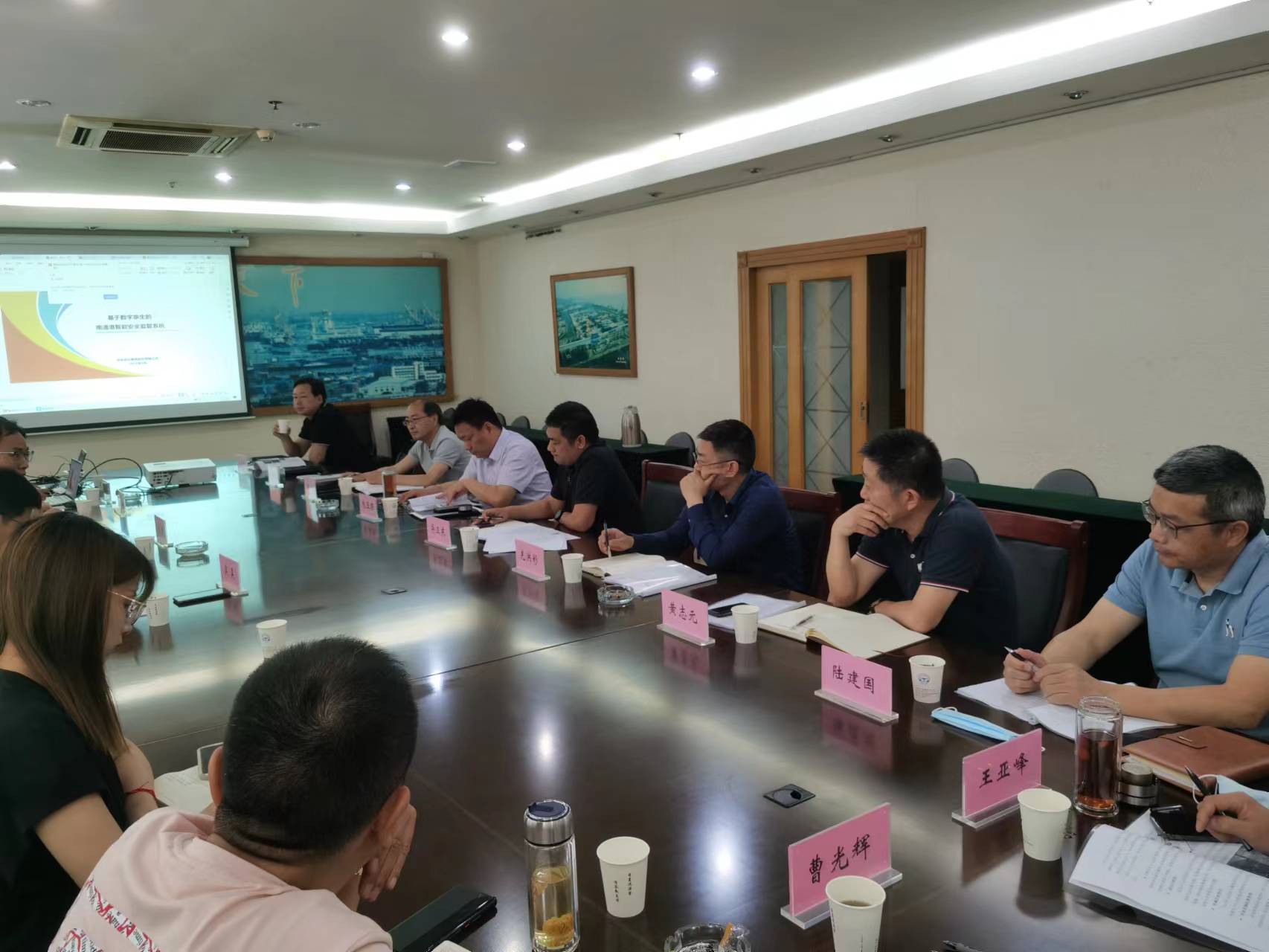 本次會議邀請華設(shè)設(shè)計集團(tuán)智能交通設(shè)計所所長劉轟團(tuán)隊現(xiàn)場指導(dǎo),主任工程師王瑞就“基于數(shù)字孿生的南通港智能安全監(jiān)管系統(tǒng)”進(jìn)行了講解,同時,劉轟詳細(xì)補充了“立體感知系統(tǒng)+大數(shù)據(jù)分析+安全生產(chǎn)管理”的一些深化方案,解讀了“數(shù)字孿生(信息化、智能化)”對新時代的影響和發(fā)展前景。