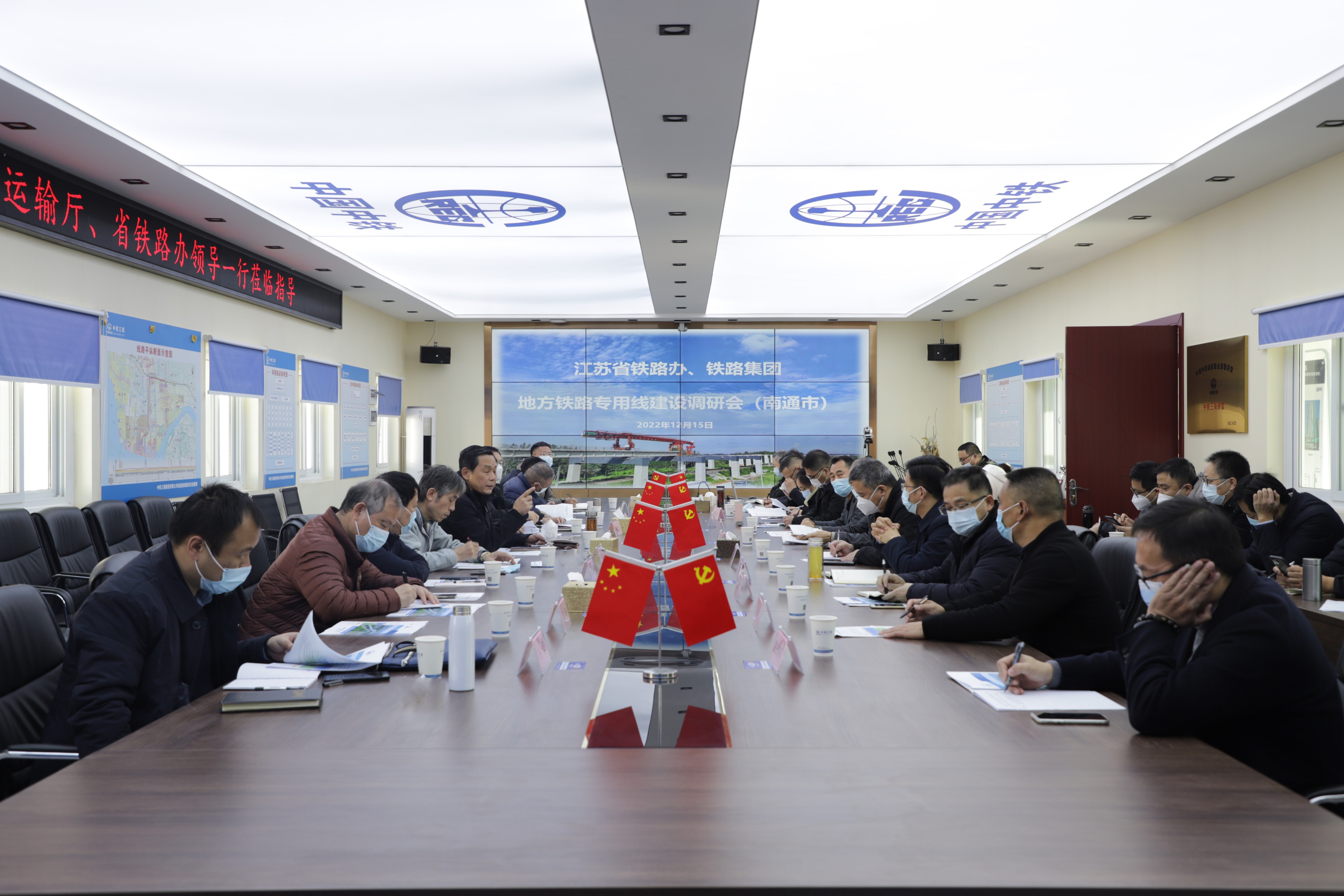 12月15日,省交通運輸廳一級巡視員丁軍華,省鐵路辦建管處處長賁志松、運法處處長馮煌飛、財審處處長王寶祥等一行前來南通港疏港鐵路一期工程開展地方鐵路專用線建設專題調(diào)研,并進行了座談交流。南通市交通運輸局黨委委員、鐵路辦主任助理張志忠,南通市鐵路辦副主任黃建東,海門區(qū)政府黨組成員成建平,省鐵路集團運營公司董事長趙瑋,南通港(港口)集團黨委副書記、總經(jīng)理、副董事長劉建,海門區(qū)交通運輸局、南通港集團通海鐵路建設公司及南通沿海開發(fā)集團、洋呂鐵路開發(fā)建設公司等單位相關負責人陪同調(diào)研。